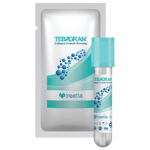 - گرانولهای پانسمان گرانول کلاژن را به قطر 3 میلیمتر بر روی بستر زخم قرار دهید.